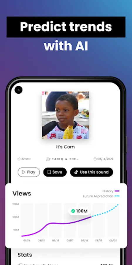 Our app helps you find trending songs and sounds for your TikTok video, and help you grow your audience and make your videos go viral.