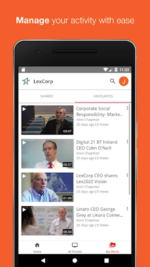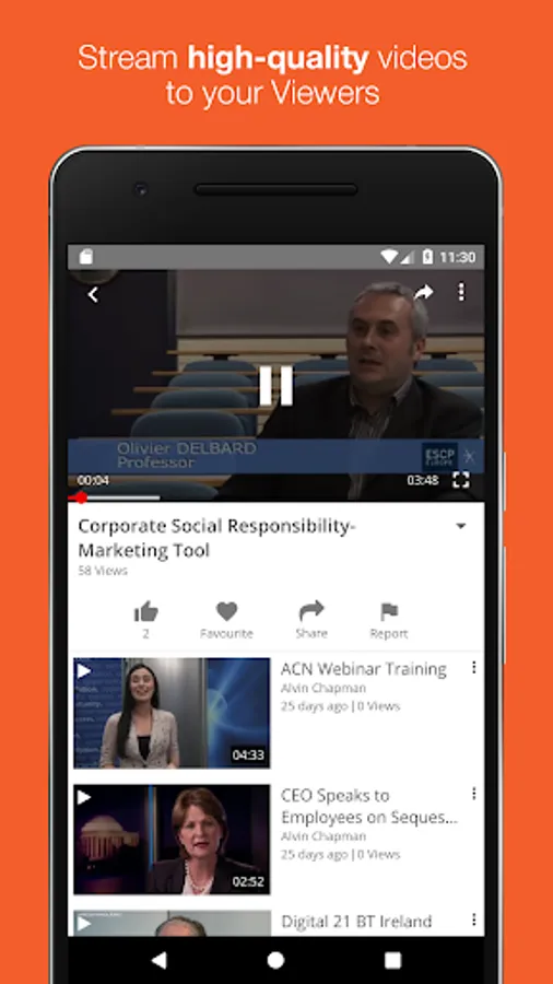 * Watch a live event, recorded CXO message, lecture, presentation, or training session from your Android smartphone or tablet