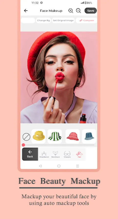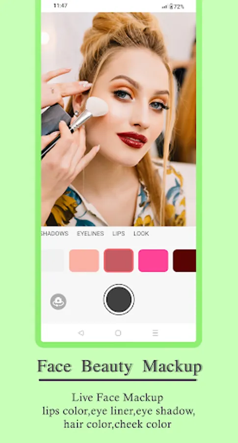 Change Lips color with Lipstick color selection with different shades for lips makeup. Different Lipstick colors are added to the app to apply different shades to your lips in photos in case you forgot to apply lipstick before taking photos.