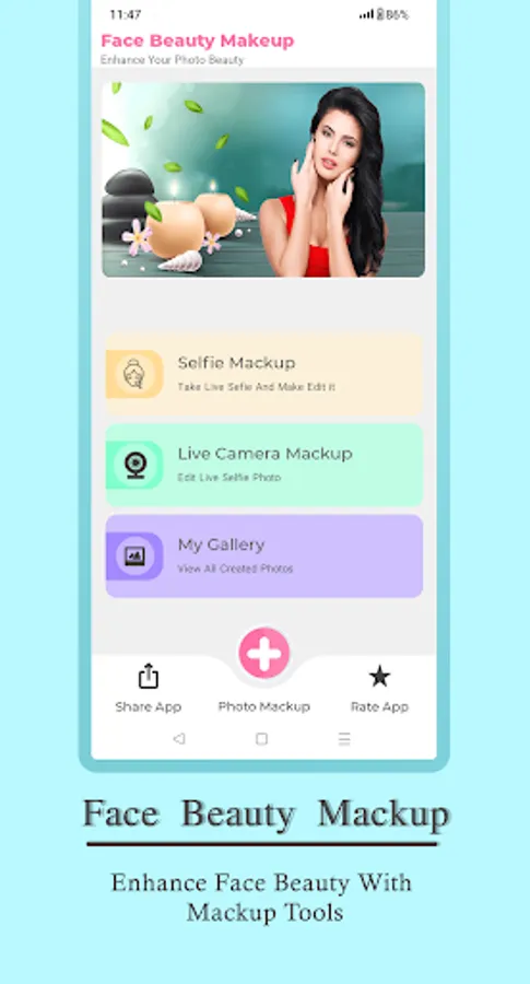 Face Beauty Makeup Camera-Selfie Photo Editor is a new photo editor with all the latest makeup tools and effects. The application is an instant tool that will help you achieve perfection and give you a beautified version of yourself.