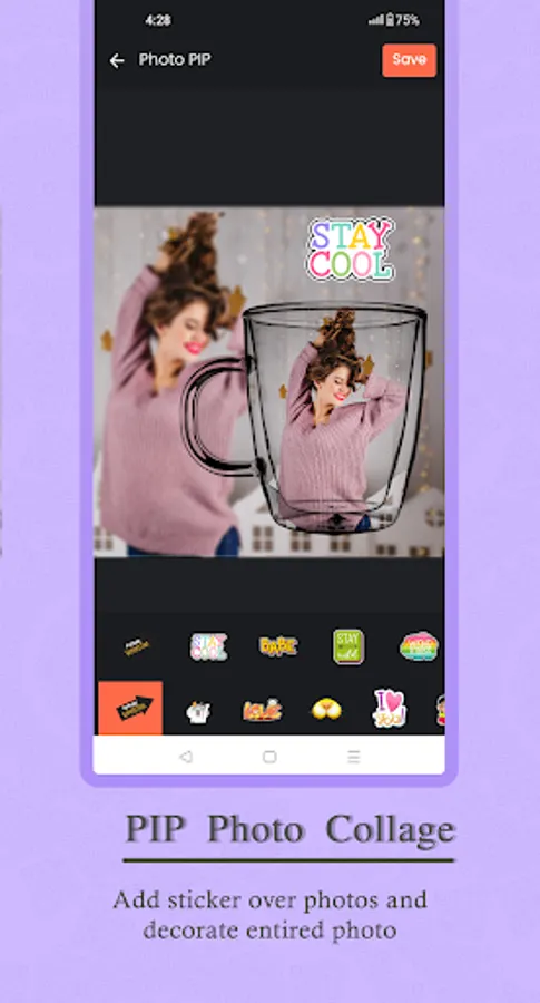 Use different PIP styles in the app to make your selfies and photos original and beautiful.