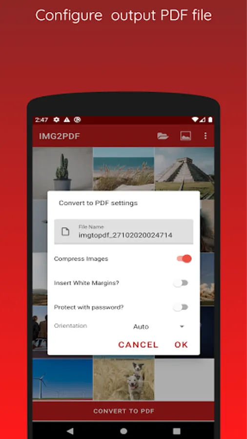 The Image to Pdf Converter easily groups and converts your images into a single PDF file.
