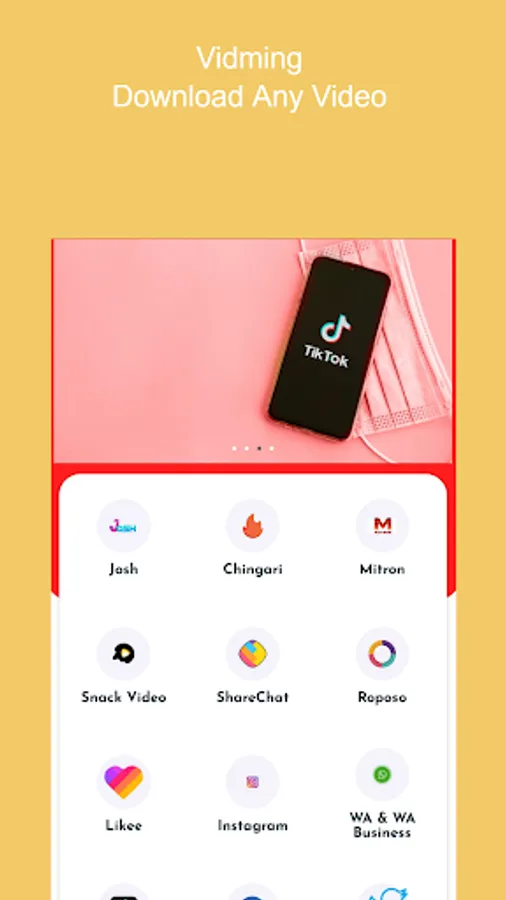 Vidming : video status app is all in one video downloader app. Vidming allow you to download any video, status and stories from multiple social media app.