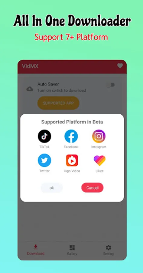 You Become Fan Of Vidmx app, After Using It! It's Allow You to download videos and image from many social media platforms. Normally, You may copy link from tiktok or any other Social media platforms and then paste it to start download. But With VidMX Auto Saver Mode, Just Copy Link And It Will Start Video/Image Downloading Automatically. No Need To Paste It In VidMX App.