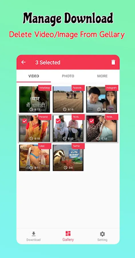 Manage Your Downloaded Image And Video In Inbuilt Gallery. Where you can delete, share, Re-share them.