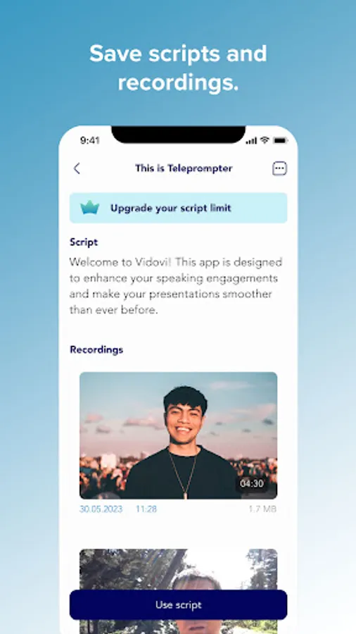 - Store your videos and scripts in local storage, giving you easy access whenever you need them.