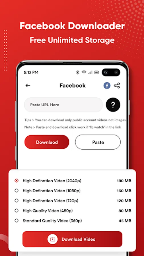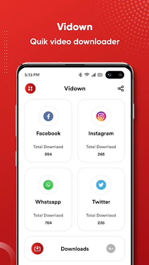 Vidown provides a quik video downloading experience for downloading videos and posts from Facebook, Whatsapp, Instagram, Twitter, and other social media.