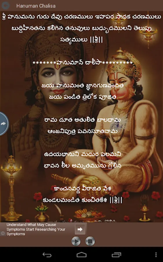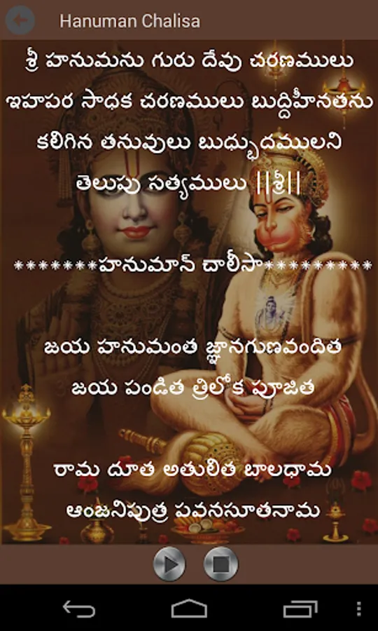 Its the first of its kind application to provide Hanuman chalisa in telugu with Audio and Text/Lyrics.