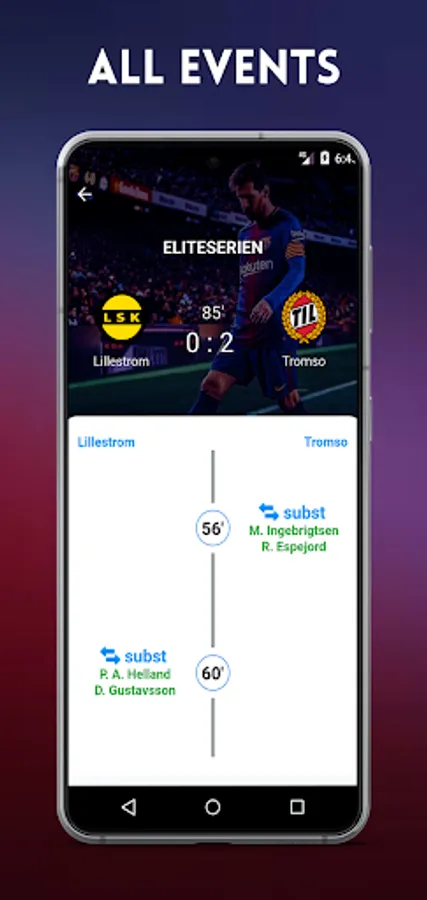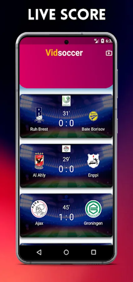تجعلك تتبّع وتشاهد مبارتك من اي مكان بوصول سهل وسريع مع رؤية جميع احداث المباراة كالاهداف والبطاقات والتبديلات مع قنوات تبث المباريات المباشرة