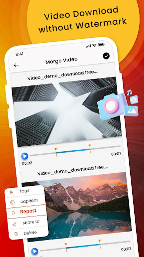 Video Downloader No Watermark app is a great video downloading the app for all types of video and music downloads. This download video app supports all video formats!