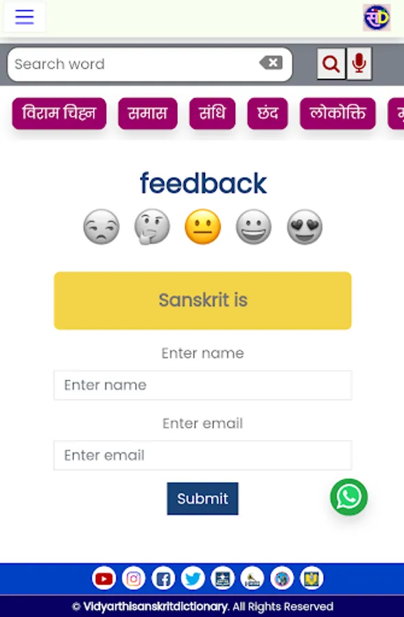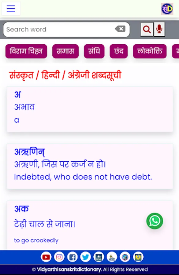 Overall, this 'Vidyarthi Sanskrit Dictionary' app is a treasure trove of Sanskrit language knowledge as well as Hindi and English language knowledge for the user. Hope users will be able to take full advantage of this 'Vidyarthi Sanskrit Dictionary'.