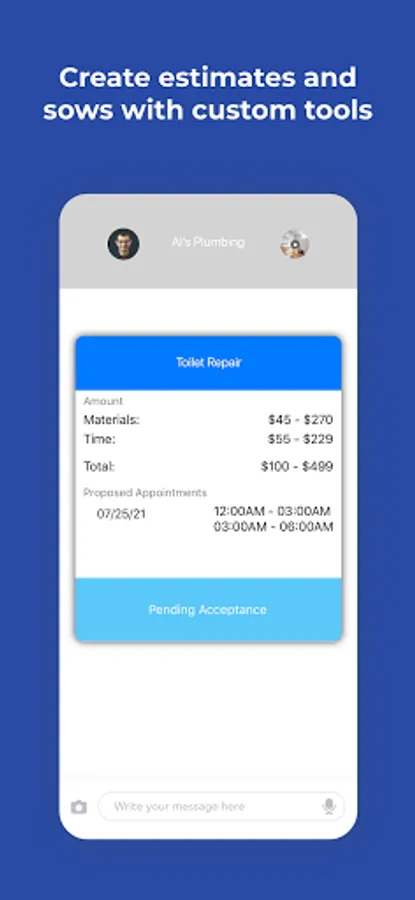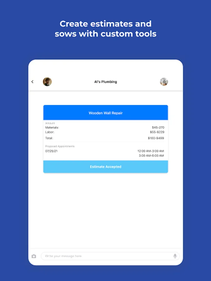 The customer will look at the Estimate and will accept the Estimate right on the App. You can schedule times to arrive to do a detailed look before you and the customer agree on the Statement of Work.