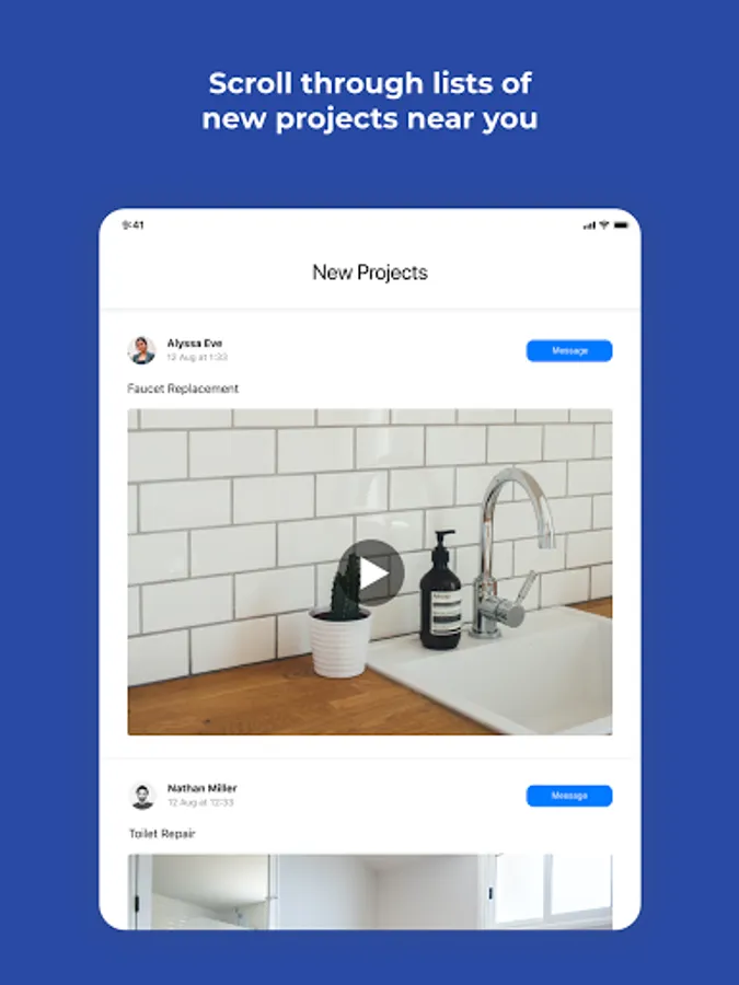 Swipe through and watch videos that are perfect for you. If you like the job description as seen in the video, chat with the customer. If everything looks good, give an Estimate right on the spot.