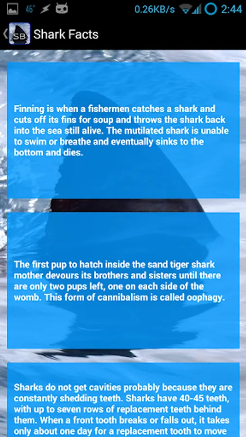 SharkBytes is a free research-based app that allows users to access shark incidents and sightings that have occurred all over the world. With internet connection and the simple click of our Search Your Beach or Shark Activity Map buttons, anyone can search beaches or dive locations by country, name, and GPS location to discover any recent or past recorded shark encounters in the area. Our data is updated daily and goes back over 100 years with more than 6000 incidents on file. It is a must have app for beachgoers, divers and shark lovers around world!