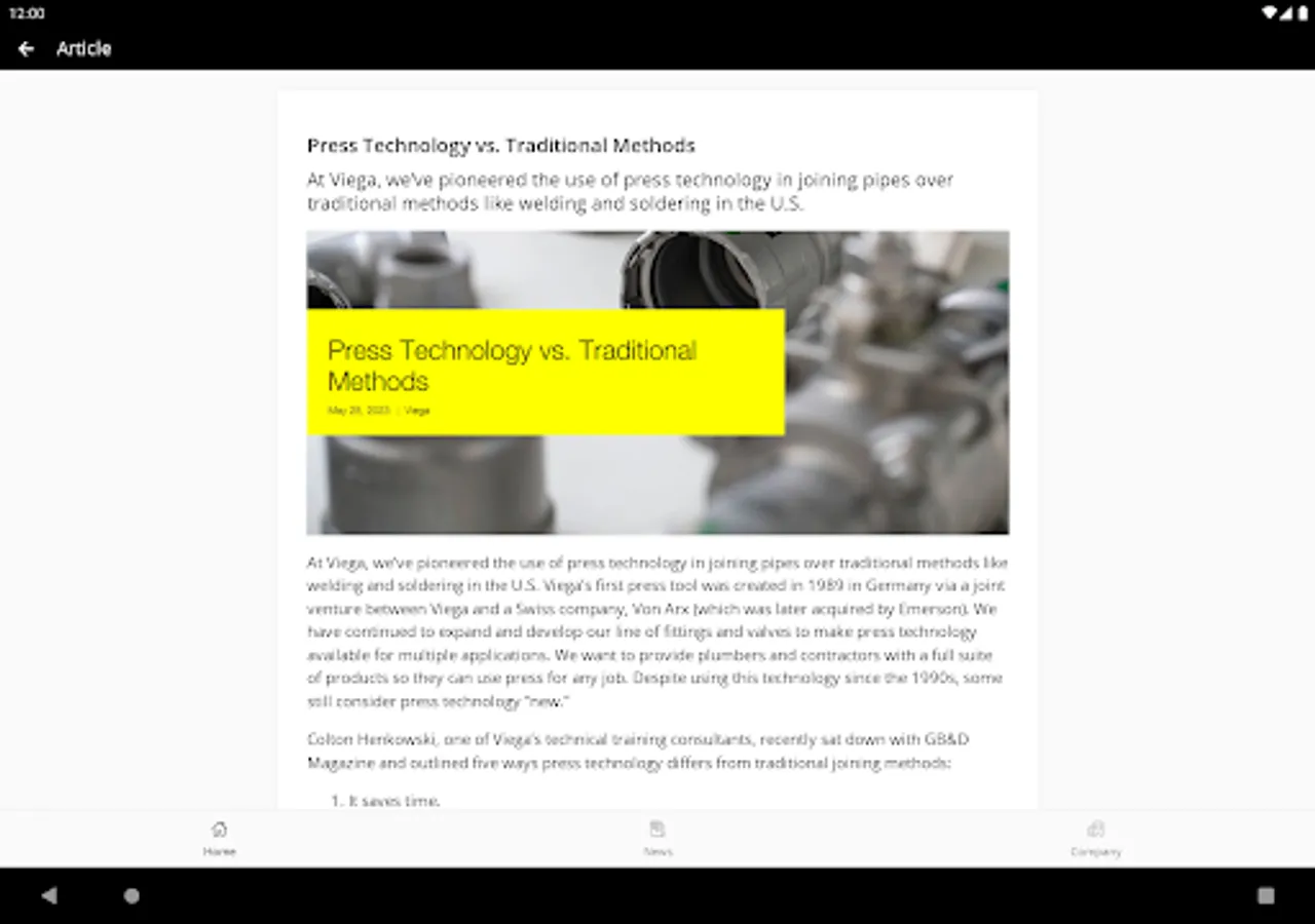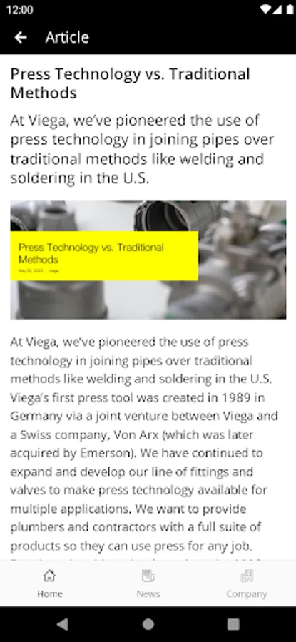 The ViegaNow app provides you with information about Viega as we pursue our purpose of Installing Lifelines for the Buildings of Tomorrow, keeping you up to date on the latest company news. With push notifications, you will know what is going on—always and everywhere!