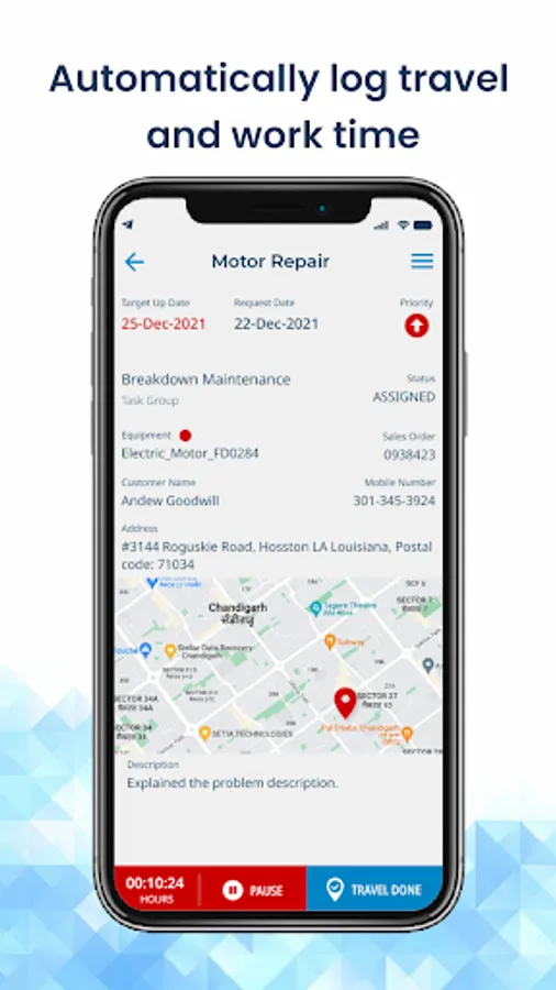 - Automatically log travel and work time