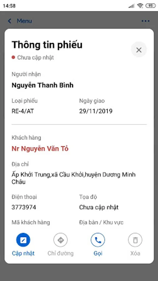 Application to manage, deliver bills, enter bills according to model b2a of VNPT - Tay Ninh