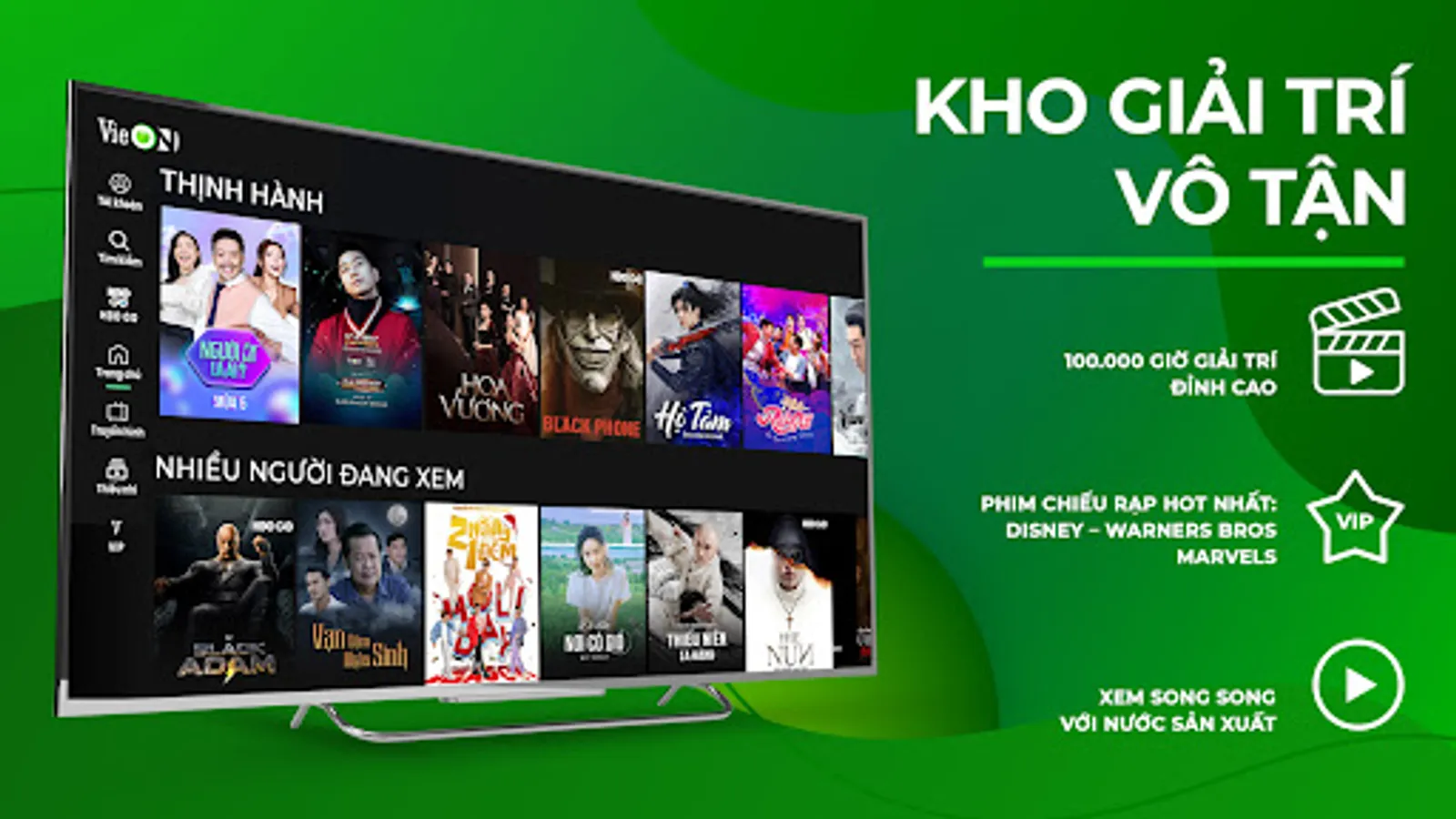 VieON is an entertainment application for watching online Movies – Football – Shows - Live TV with the largest library of copyrighted content in Vietnam.