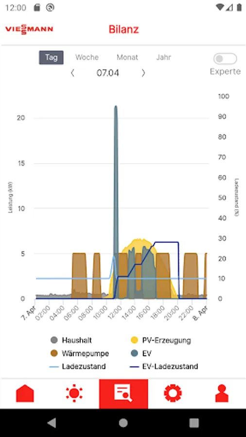 Historical data can be followed on a daily, weekly, monthly and yearly basis in the report dashboard; an expert function shows even more detailed energy trends and data.