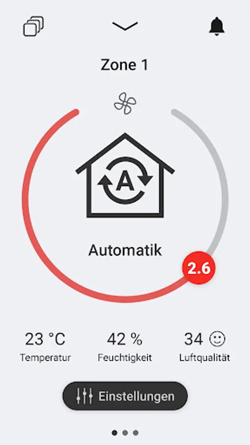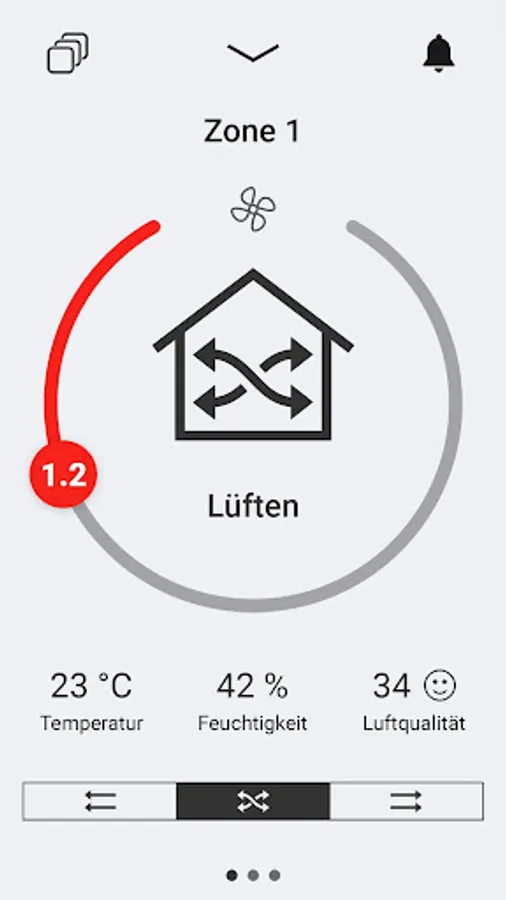 If you have set up different ventilation zones using the dip switches on the fan unit, all you need to do is swipe the display from right to left to switch between the different zones. So you have your ventilation settings in view at all times and can easily adjust them.