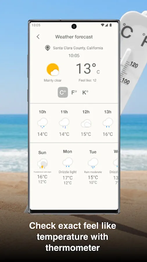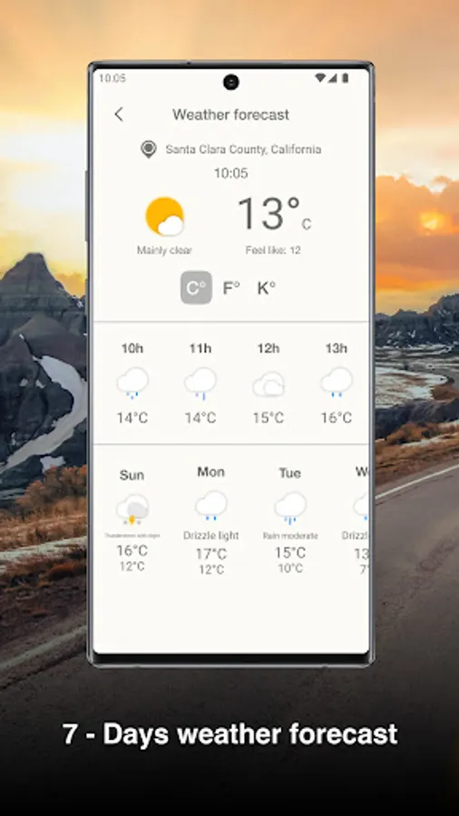 Up to 7-Days accurate weather forecast for you to plan your perfect weekend or vacation with your loved one. By collecting the data from weather stations around your location. The forecast will be close to exact with the precise feel like temperature in celsius, fahrenheit and kelvin of your current surrounding location. It provides forecast for sunny, rain, snow, drizzle, hail weather for you.