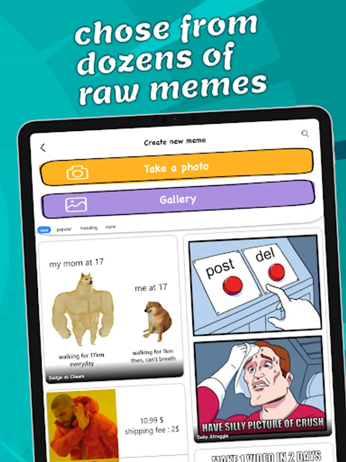 • All the trending and popular meme templates updated daily.