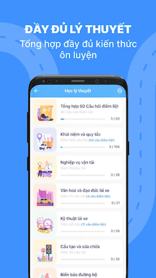 This is an application that helps you learn the theory to prepare for the driving theory test in just 3 days. Please follow the steps below to get the best test results and shorten your preparation time!