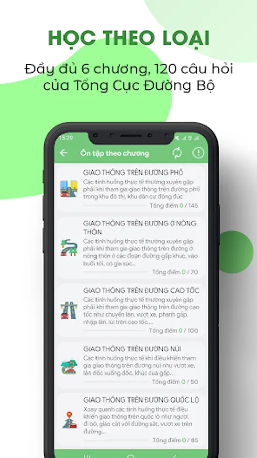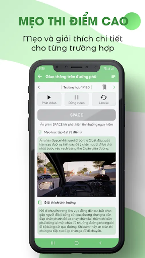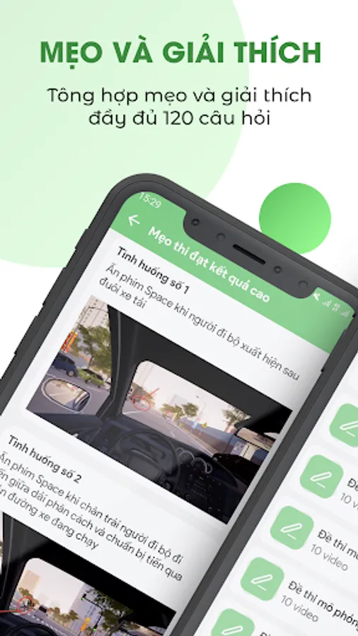 Our test software simulates 120 traffic situations to simulate real-life situations when participating in traffic, developed based on the software previously issued by the Directorate for Roads of Vietnam.