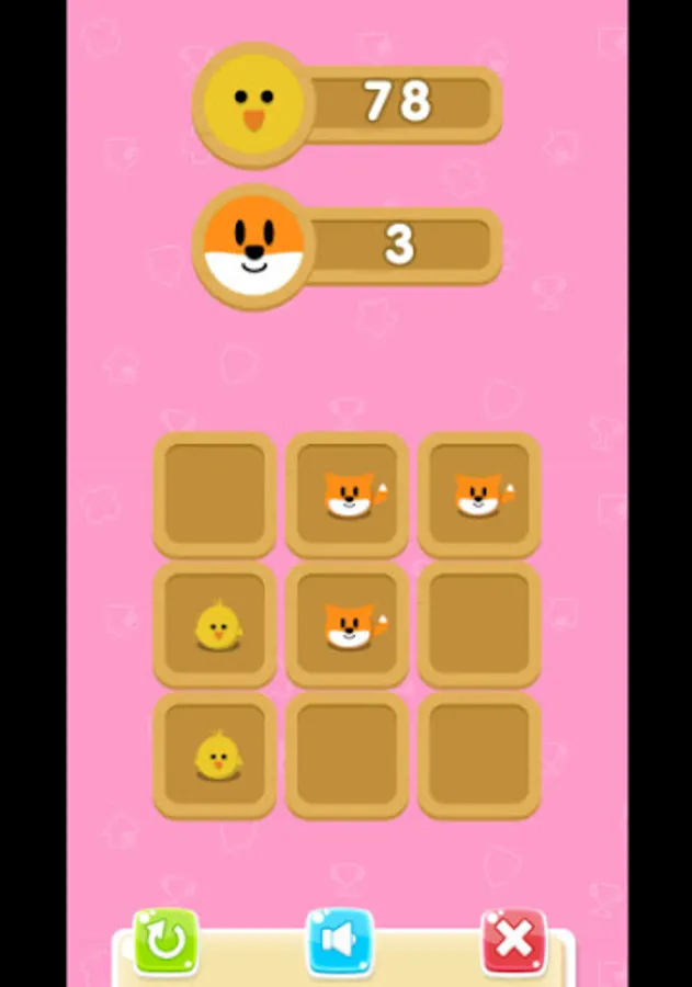 Chick and Fox is an html5 puzzle game for two players, Chick and Fox, who take turns marking gaps in a 3 × 3 grid. Vertical or diagonal will win the match.