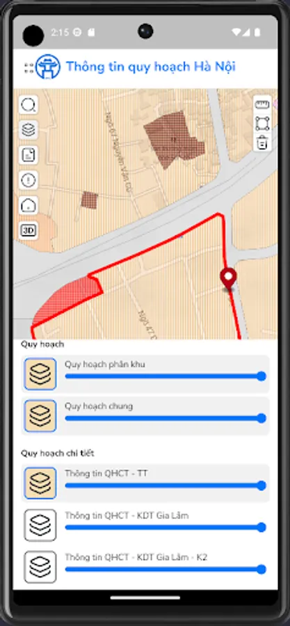 The application provides detailed information about land use planning in a specific area. Users can look up information about planning types such as general planning, detailed planning, project planning. This App is useful for residents, businesses, and professionals related to the field of real estate and urban planning to better understand land planning and manage their properties.