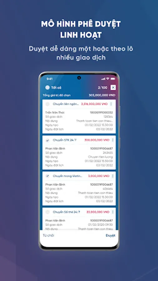 - Report: monitor the status of transactions performed on Internet Banking and Mobile Banking app.