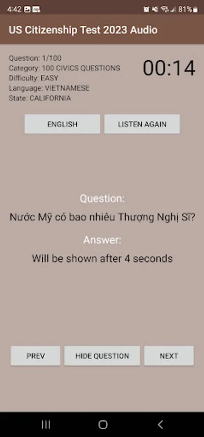 Vietnamese in California is a dedicated group with years of expertise in preparing lawful permanent residents for the U.S. Citizenship Naturalization Test. Our app offers comprehensive practice tools to ensure you are fully prepared.
