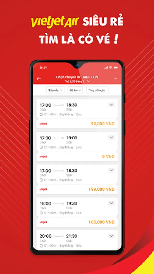 Not only is it easy to hunt promotional tickets from Vietjet Air, but also Vietjet Air booking app helps you hunt for more attractive offers.