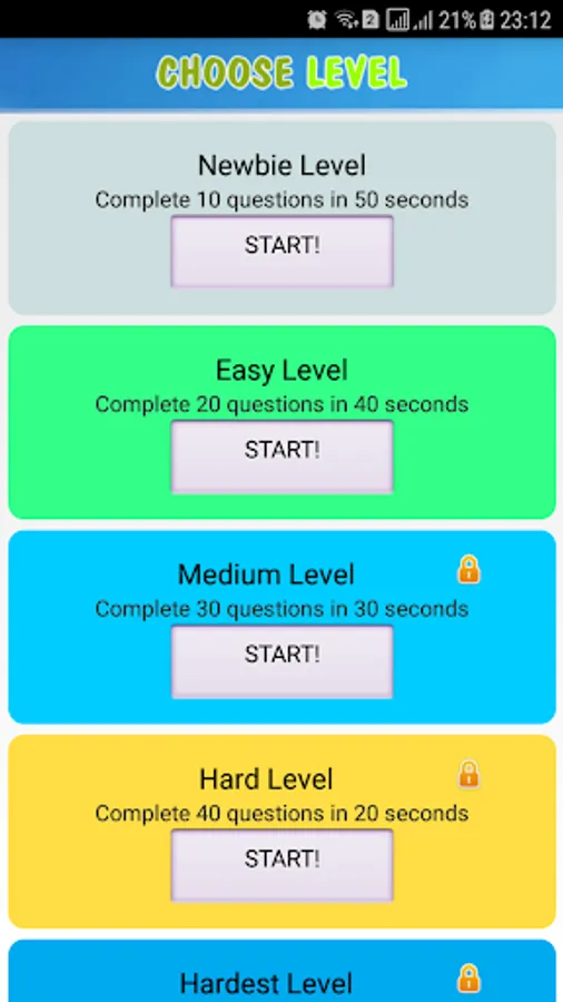 - The quiz (play) divided into 5 levels with increasing number of questions, shorter response times to help players train memory, reflexes. The question multiple choice quiz format is fast. With each increasing level of difficulty playing for the player will have to pass each level to higher levels.