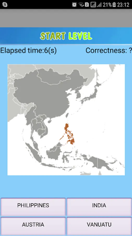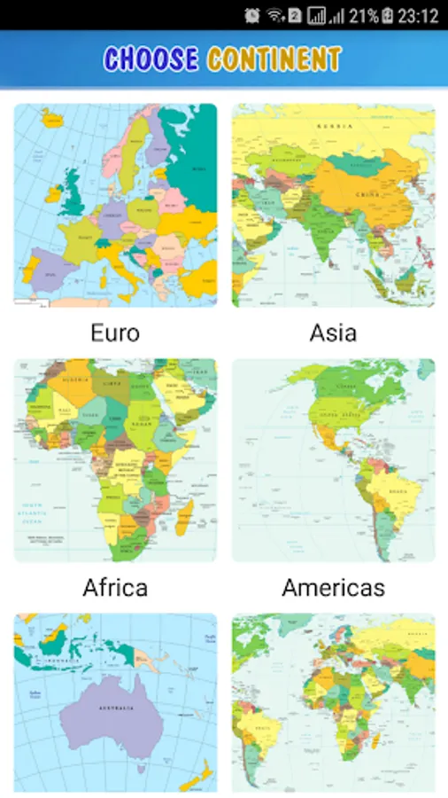 Funny location map quiz is the educational application of geographic location maps of countries and territories around the world. Application including learning and quiz functions helps players easily learn the latest location map of the countries and territories around the world, the position of countries in each continent.
