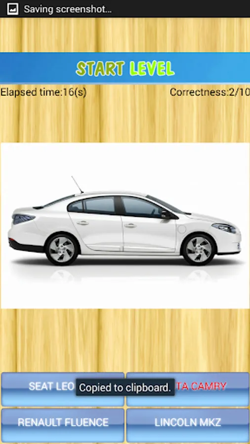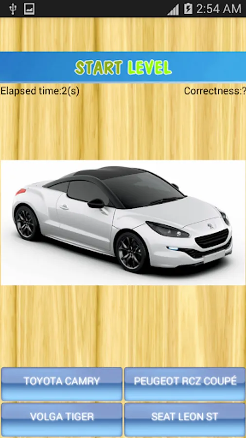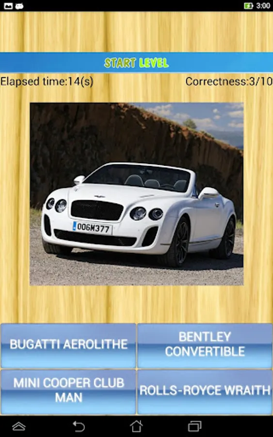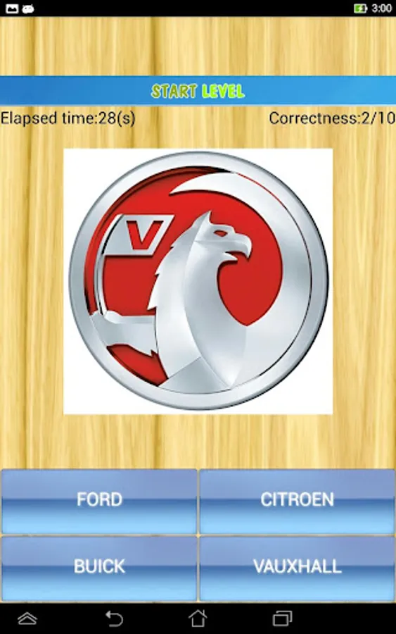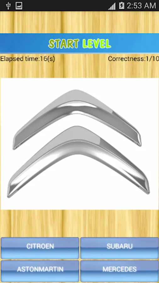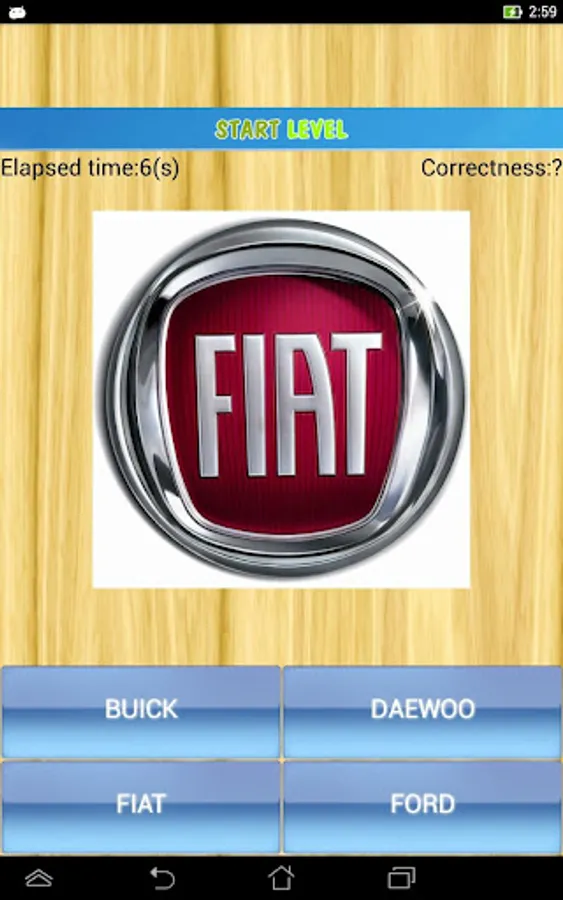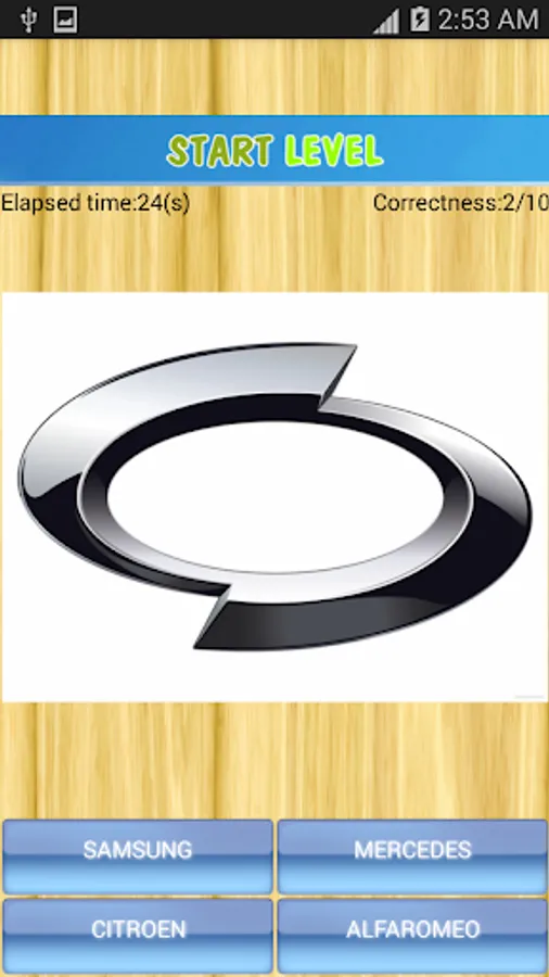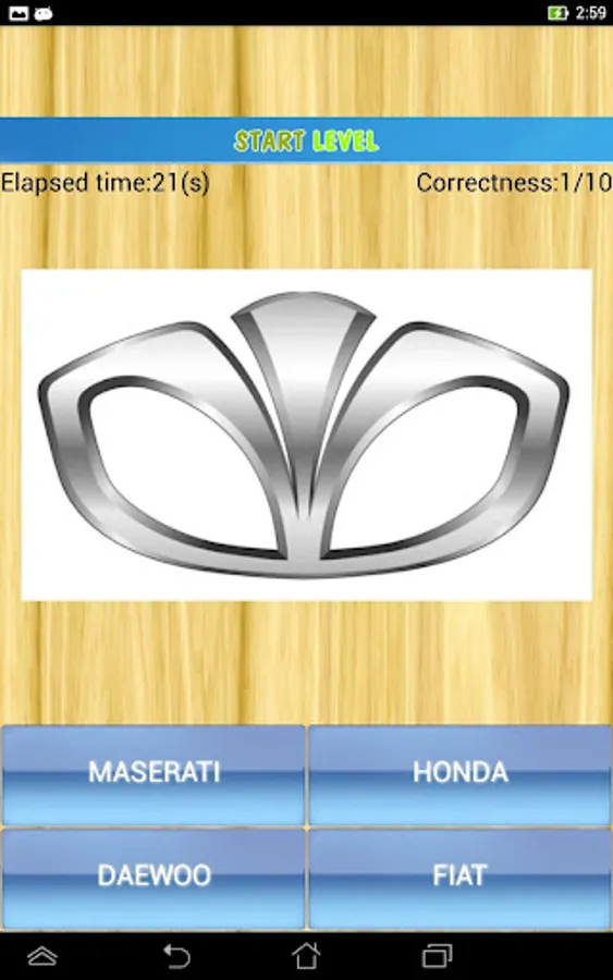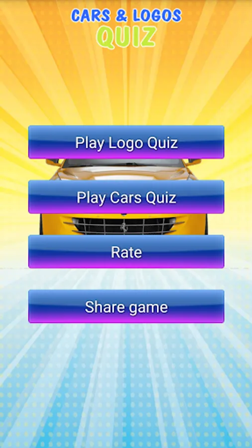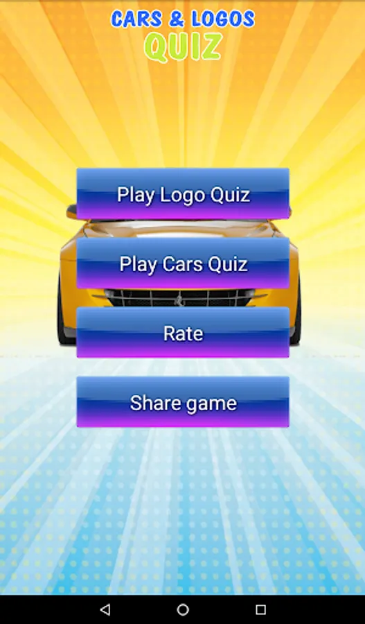 The application consists of two quiz parts: logo quiz and car name quiz.