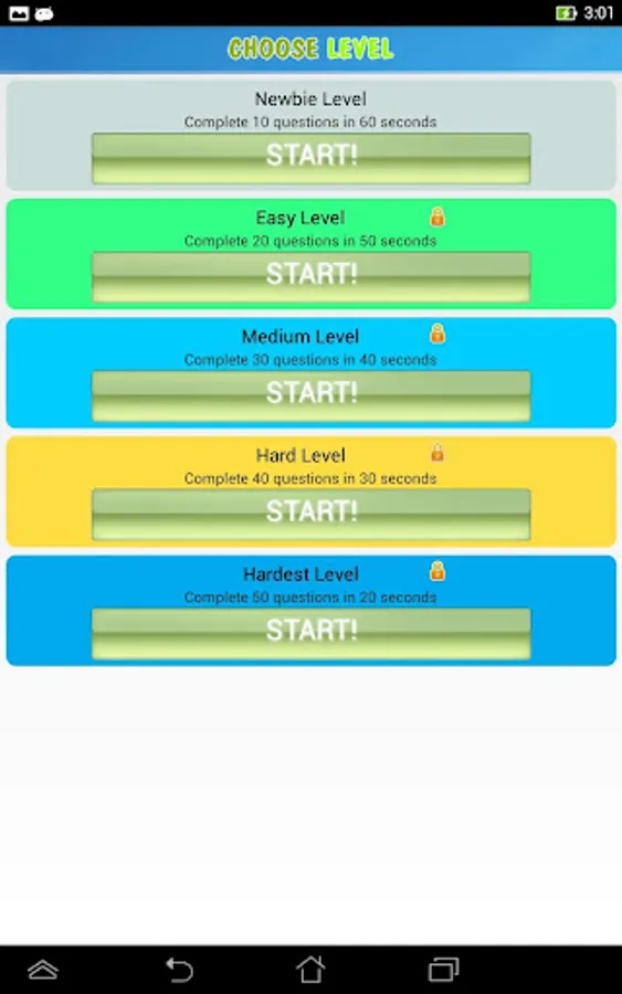 The game is divided into five levels test so that you can practice memory under increasing difficulty.