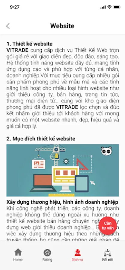Ứng dụng Vitrade được Công ty Cổ phần Vietnamtrade xây dựng với mục đích hỗ trợ Doanh nghiệp trong việc xây dựng đánh giá sản phẩm, tư vấn hỗ trợ doanh nghiệp trong các vấn đề pháp lý, thương hiệu, hoàn thiện sản phẩm và marketing bán hàng.