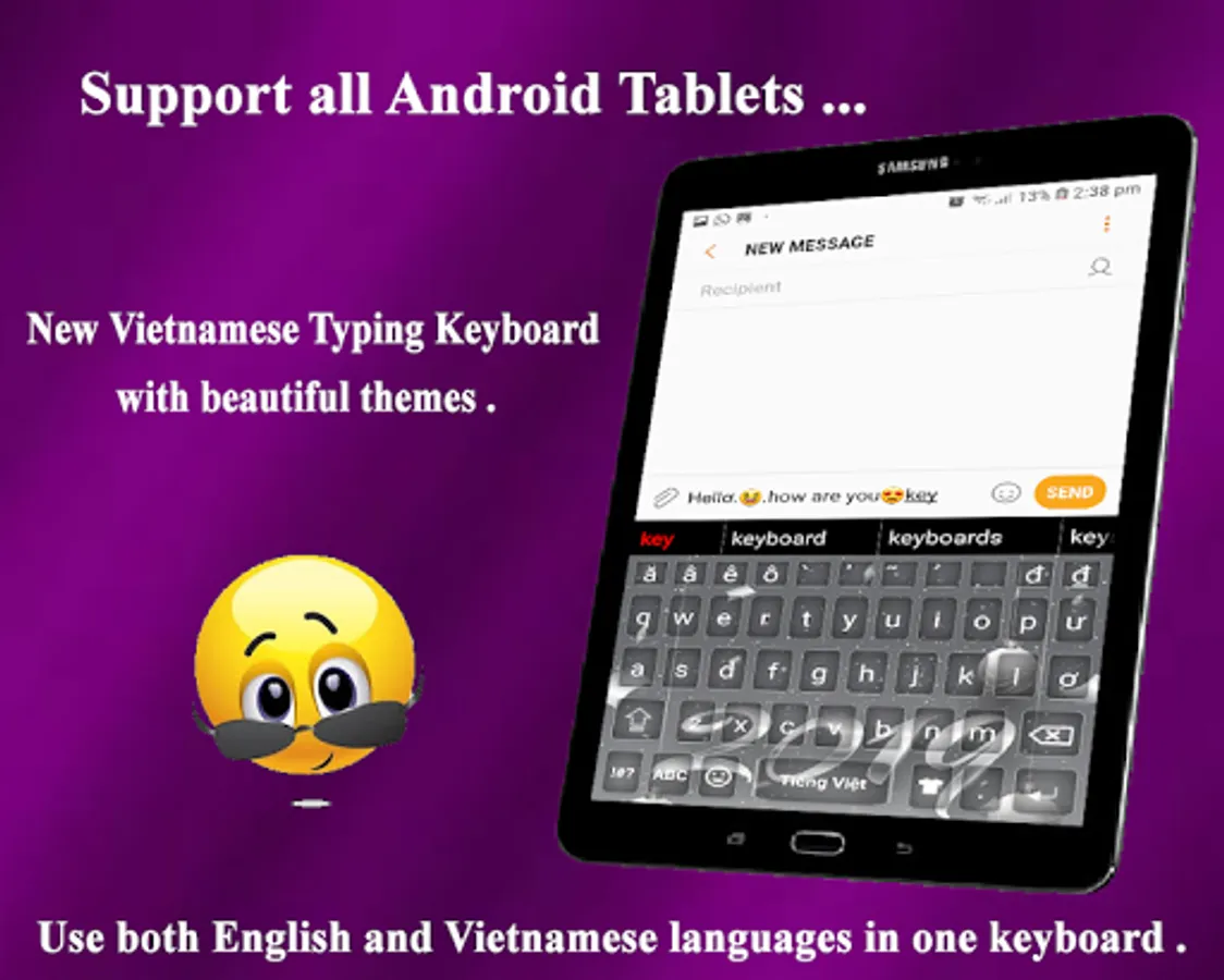 Vietnamese Keyboard allows you to type in the Vietnamese language with Vietnamese app. You can compose emails, post on the social network and write someone message through Vietnamese keyboard with English Keypad. With Vietnamese Language Keyboard, you can write all Different Vietnamese Alphabets, Vietnamese letters, and Vietnamese words. Vietnamese Typing app is the easiest keyboard to write in the Vietnamese language.