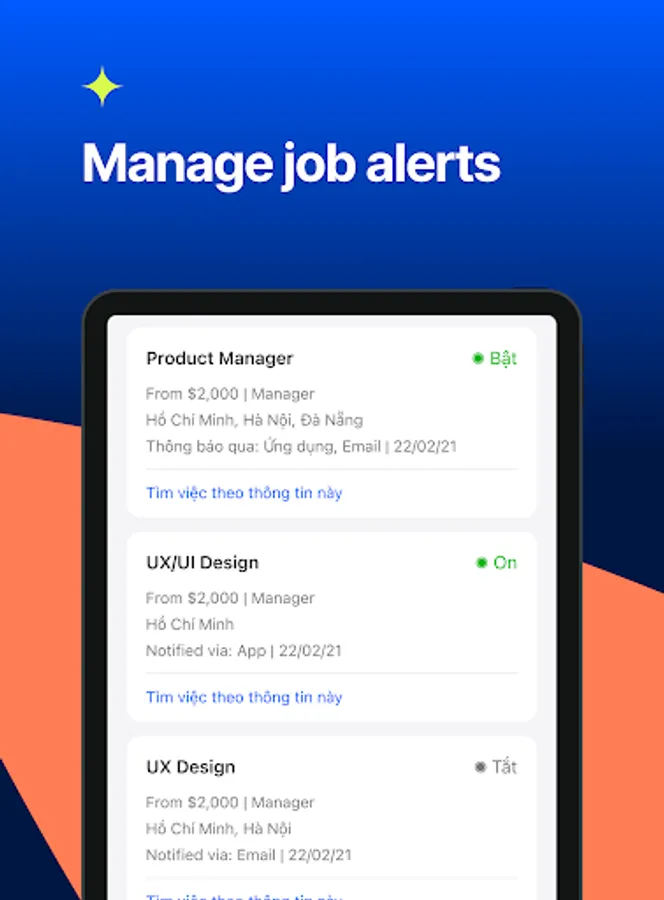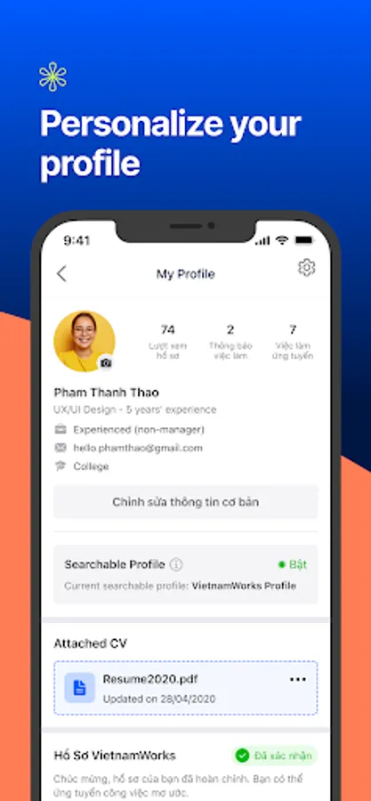 Get new experiences of searching jobs professionally on mobile with VietnamWorks – Job Search application. With only one app on your devices, you will able to find the best jobs in the fastest way, easily apply for jobs and create your own online resume, impress employers and get a dream job right from your smartphones.