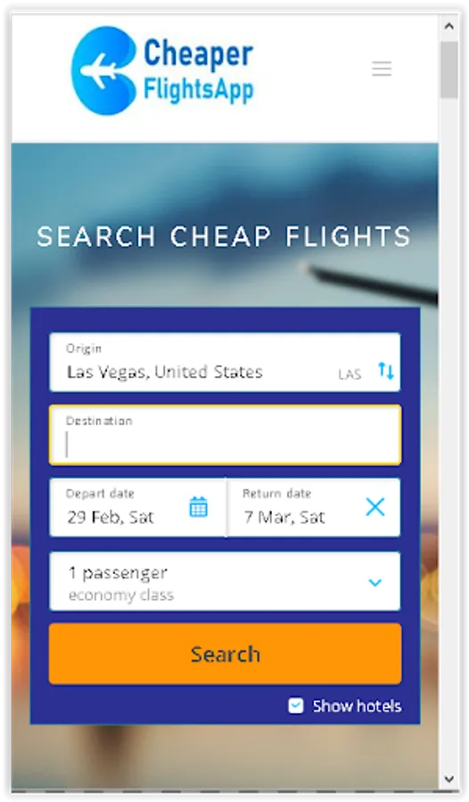 Cheaper Flights App - Best Flight Search App is a new addition in the arsenal of apps to facilitate tourist and adventure enthusiasts that are always on the go. With the help of this amazing app you can compare flight fares of different airlines going to your desired destination and book the cheapest, most affordable and convenient air tickets. You can also book hotels and rent cars online all in one place.
