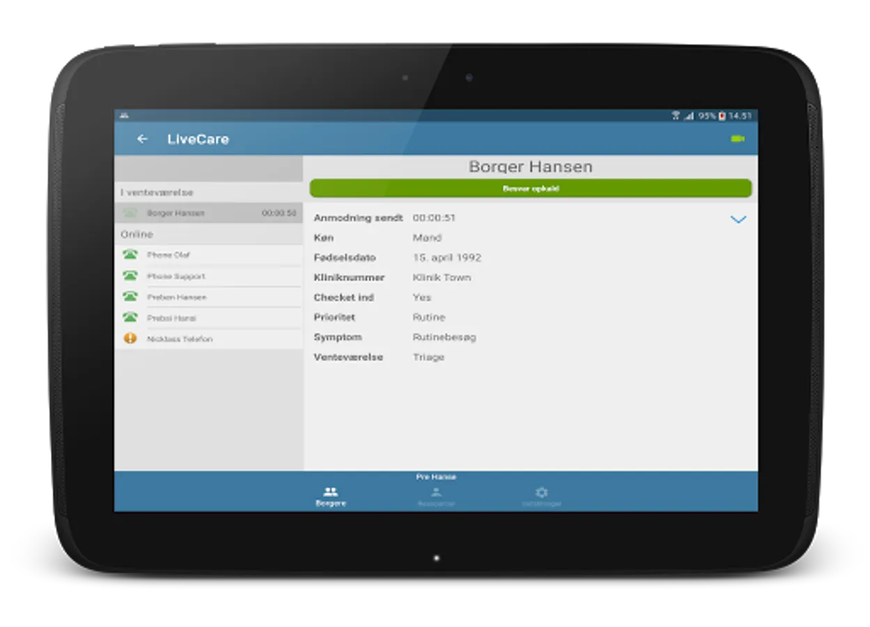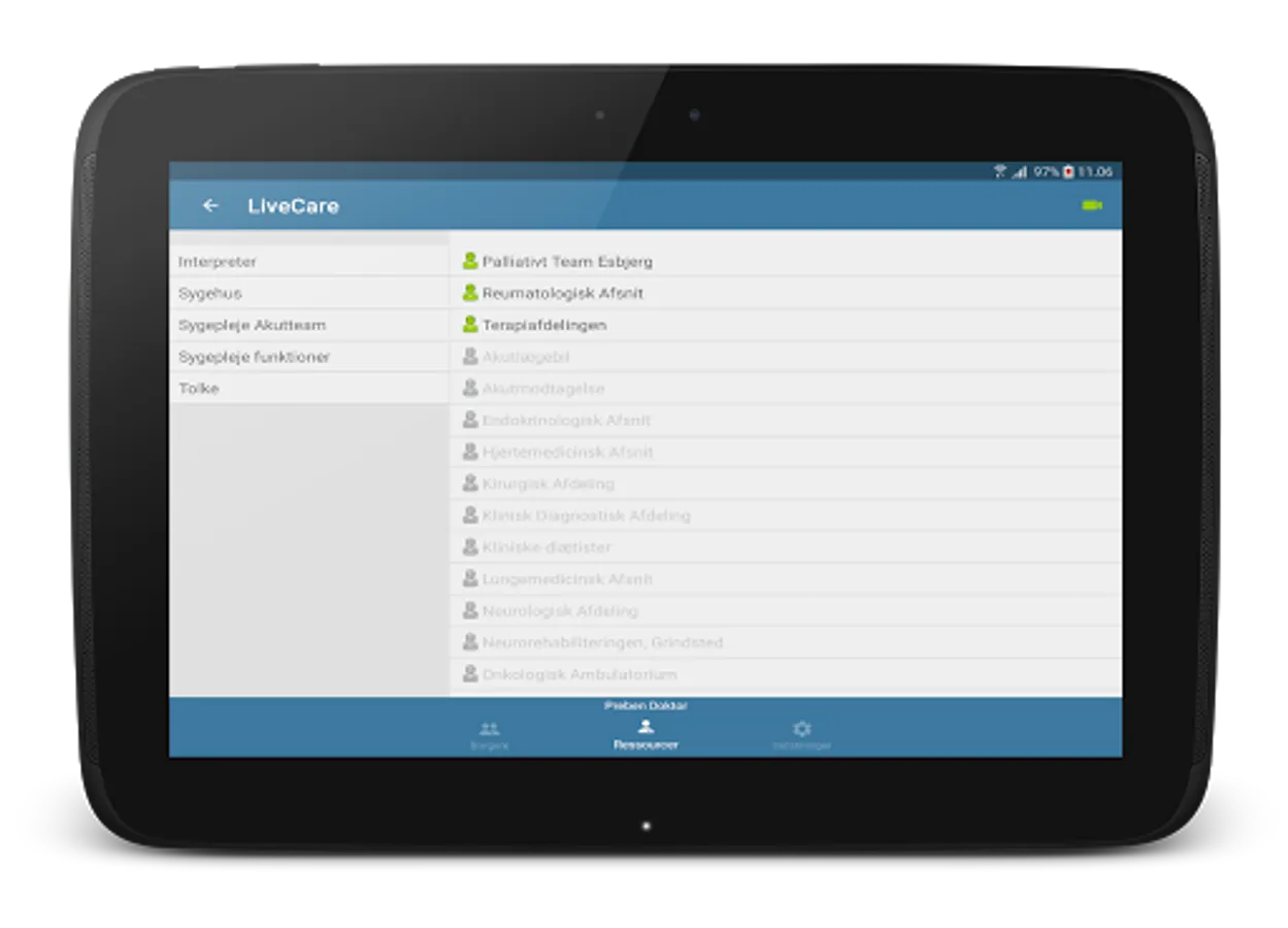 The provider can make a direct call to citizens and colleagues who are online and complete video calls.