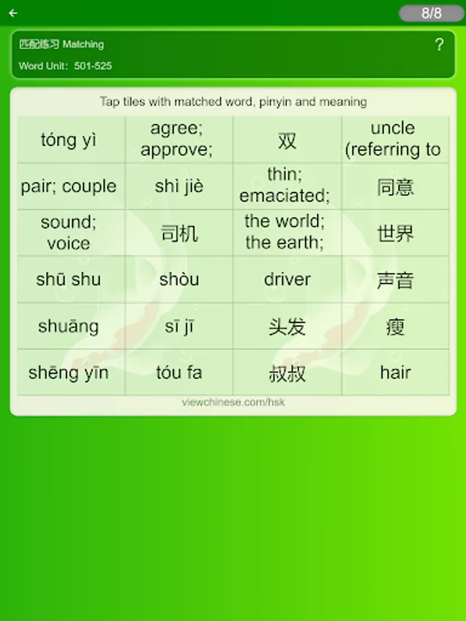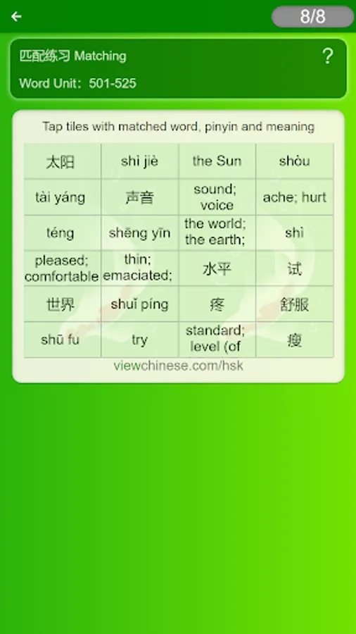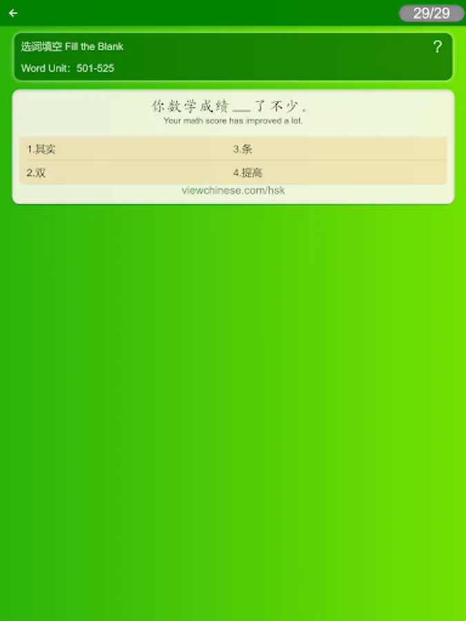My HSK App is an App to quickly memorize Chinese vocabulary. It can help Chinese learners memorize HSK level 1 to 5 words and example sentences. Each word includes: Chinese characters, Pinyin, English explanation, picture description, audio and example sentences. Functions include: Typing, Sentence Typing, Fill the Blank, Flashcard, Matching game, and reading aloud recordings, etc. The most interesting thing is that you can also launch group competitions, allowing a group of learners to compete online for various exercises, entertaining and learning easily.