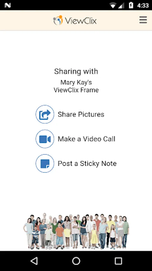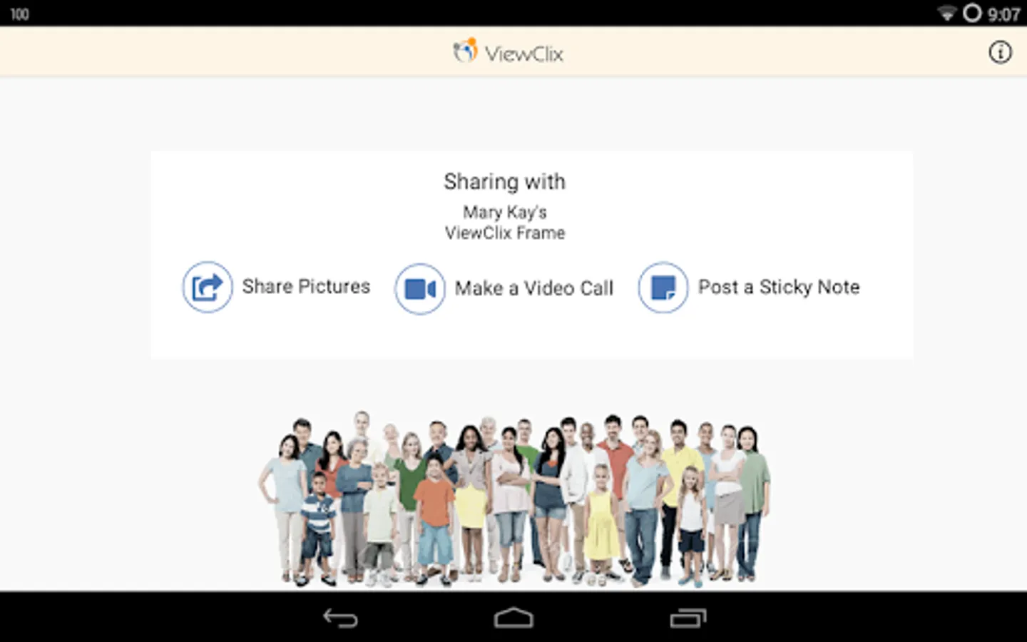 The ViewClix mobile app is used by family and friends to share photos easily from smart phones and tablets with a ViewClix frame. Also, with the touch of a button, you can quickly connect a video call to the ViewClix Smart Frame.
