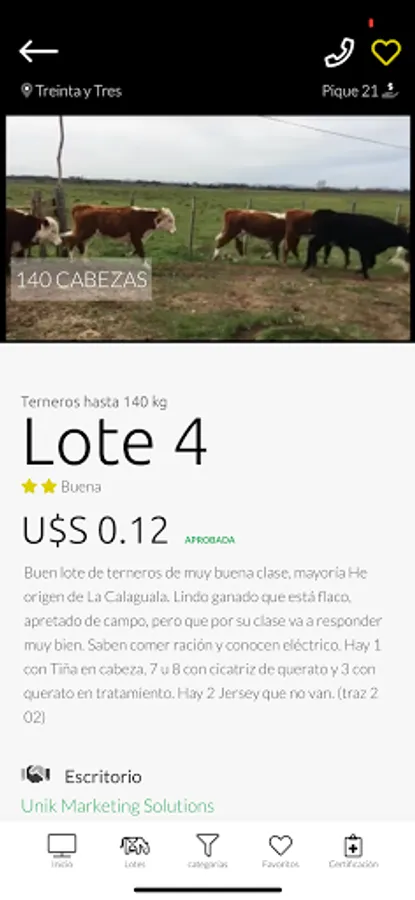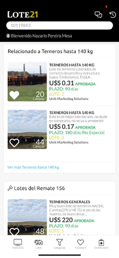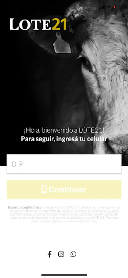 Lote21 is a free registration and access application that allows its users to perform various actions. In Lot 21, users will be able to see the live transmission of cattle auctions, make offers (21 piques), communicate with the representative desks and see important information about the lots to be auctioned, receive all kinds of news and notifications.