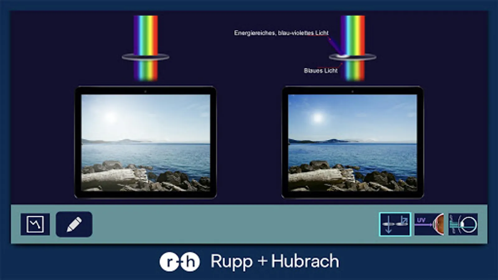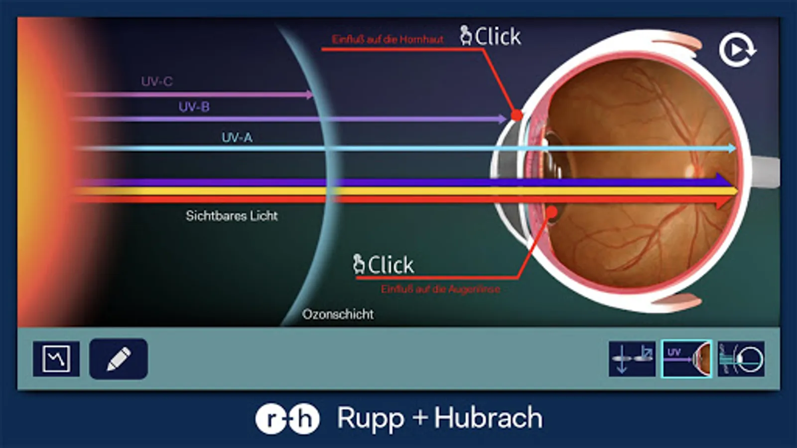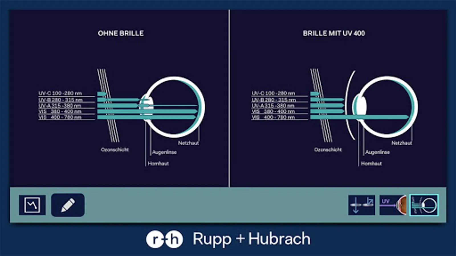 To protect against harmful UV radiation and high-energy blue-violet radiation, there are different lens solutions. With this app and the associated measuring tool, the characteristics and advantages of the individual solutions are presented vividly and easily comprehensible.