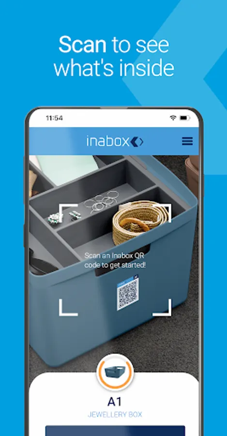 Scan or search - Ready to find your items again? Simply search the app using your keywords, or scan the QR code to see what's inside.