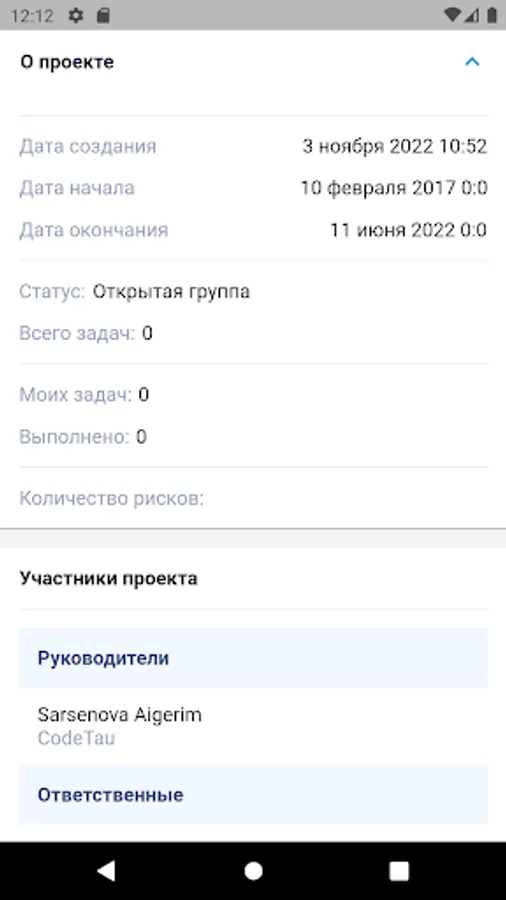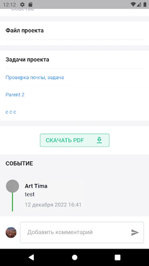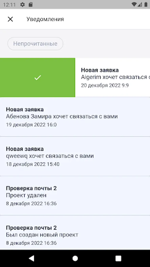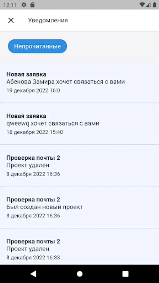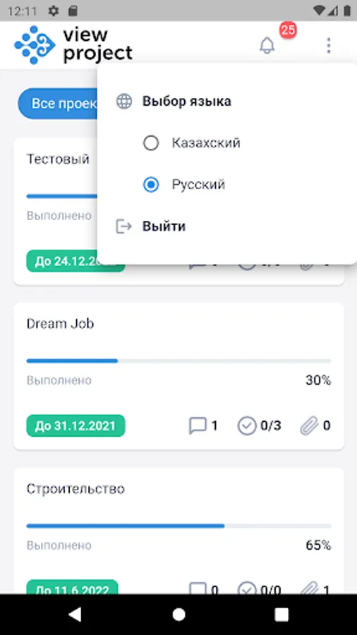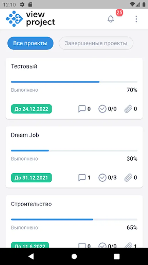 Mobile application for receiving notifications, viewing user projects and downloading reports;