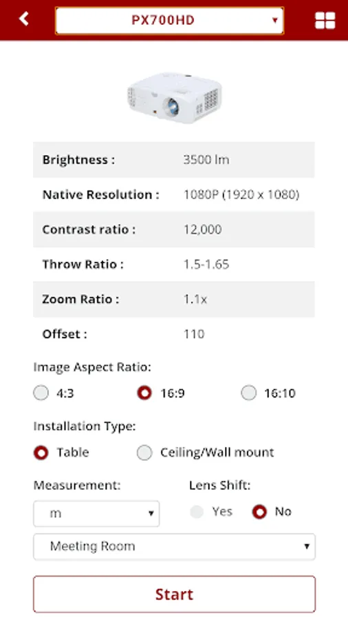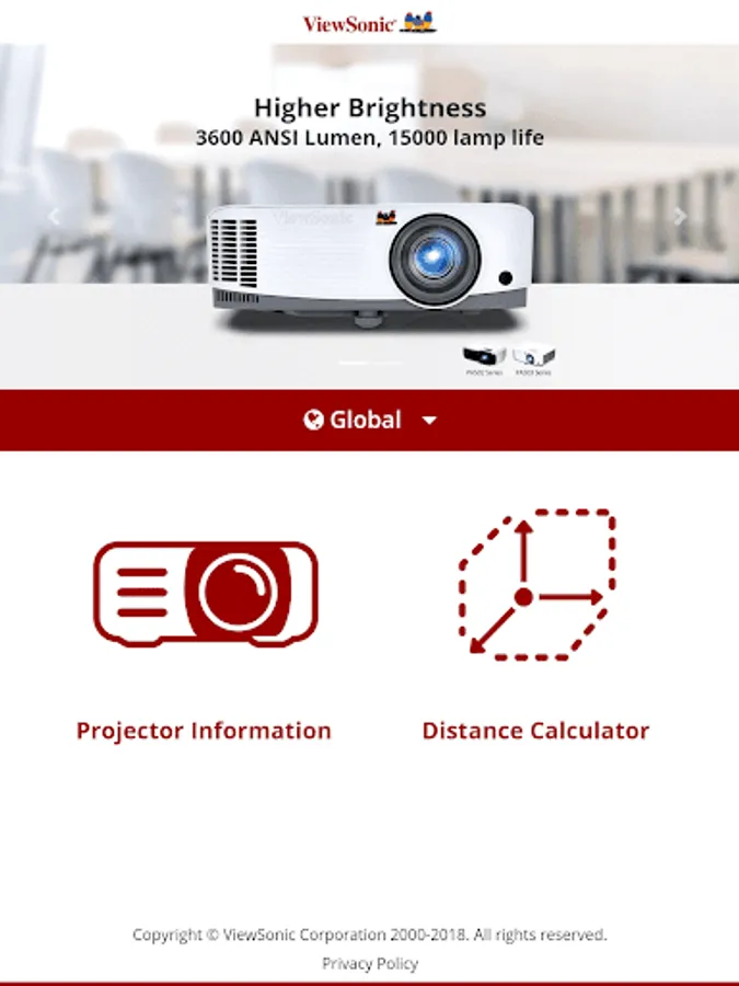 ViewSonic Projector summarizes the projector’s basic and advanced know-how to end users, installers, or distributors. It contains a bunch of practical information for choosing appropriate projectors in different scenarios. No matter small meeting room, middle classroom, or big hall, ViewSonic Projector tells you how far the projector should be placed according to the room ceiling height, projector’s screen size, aspect ratio, etc. Just input several figures, the result will be displayed in the simulation scenarios with measurement. You can use finger to adjust the distance instantly.