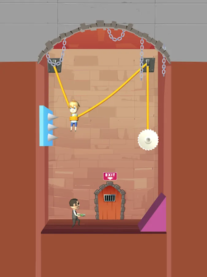 Help the boy to save from the room and cut the rope and swipe with finger! avoid the hurdles and pinch.